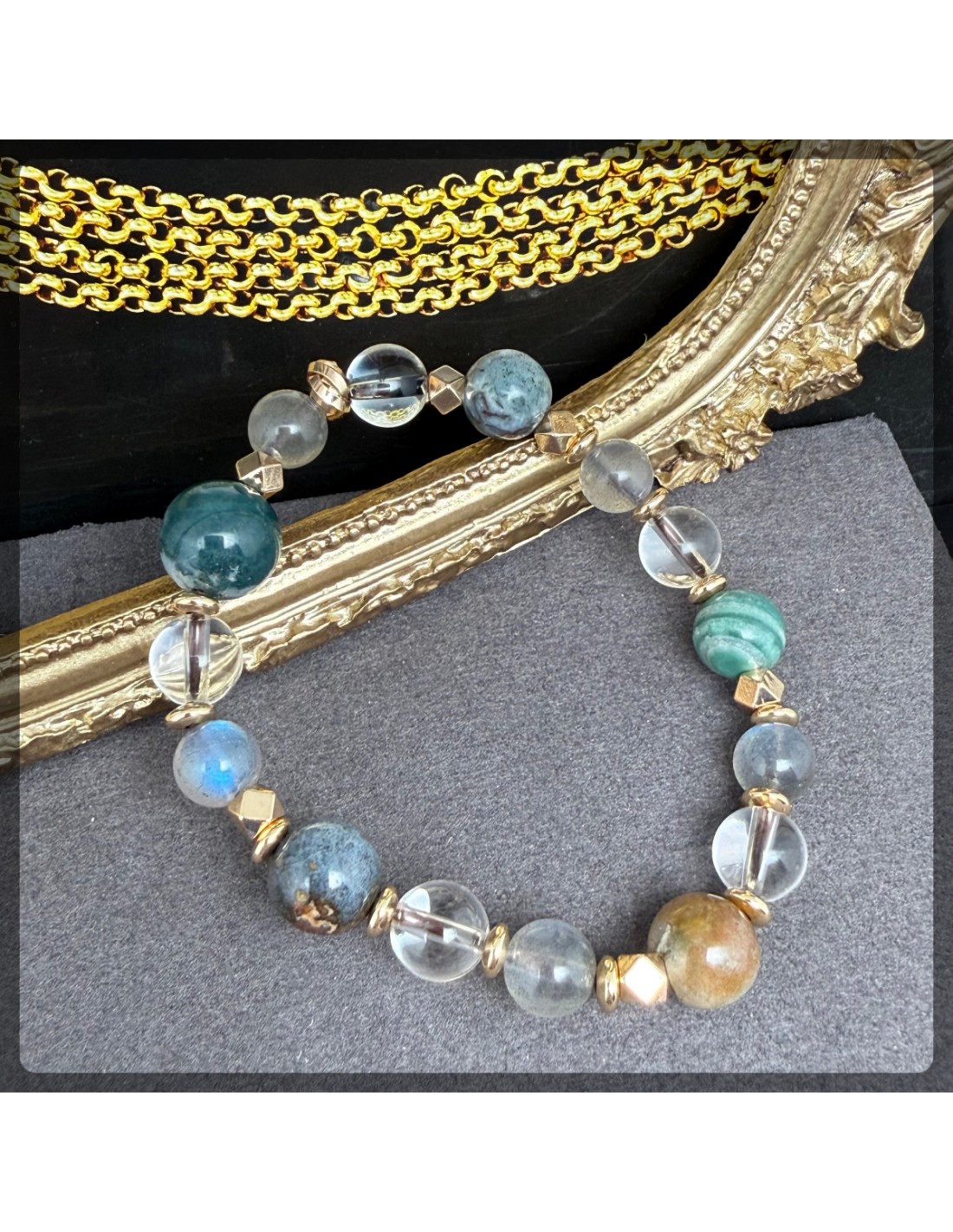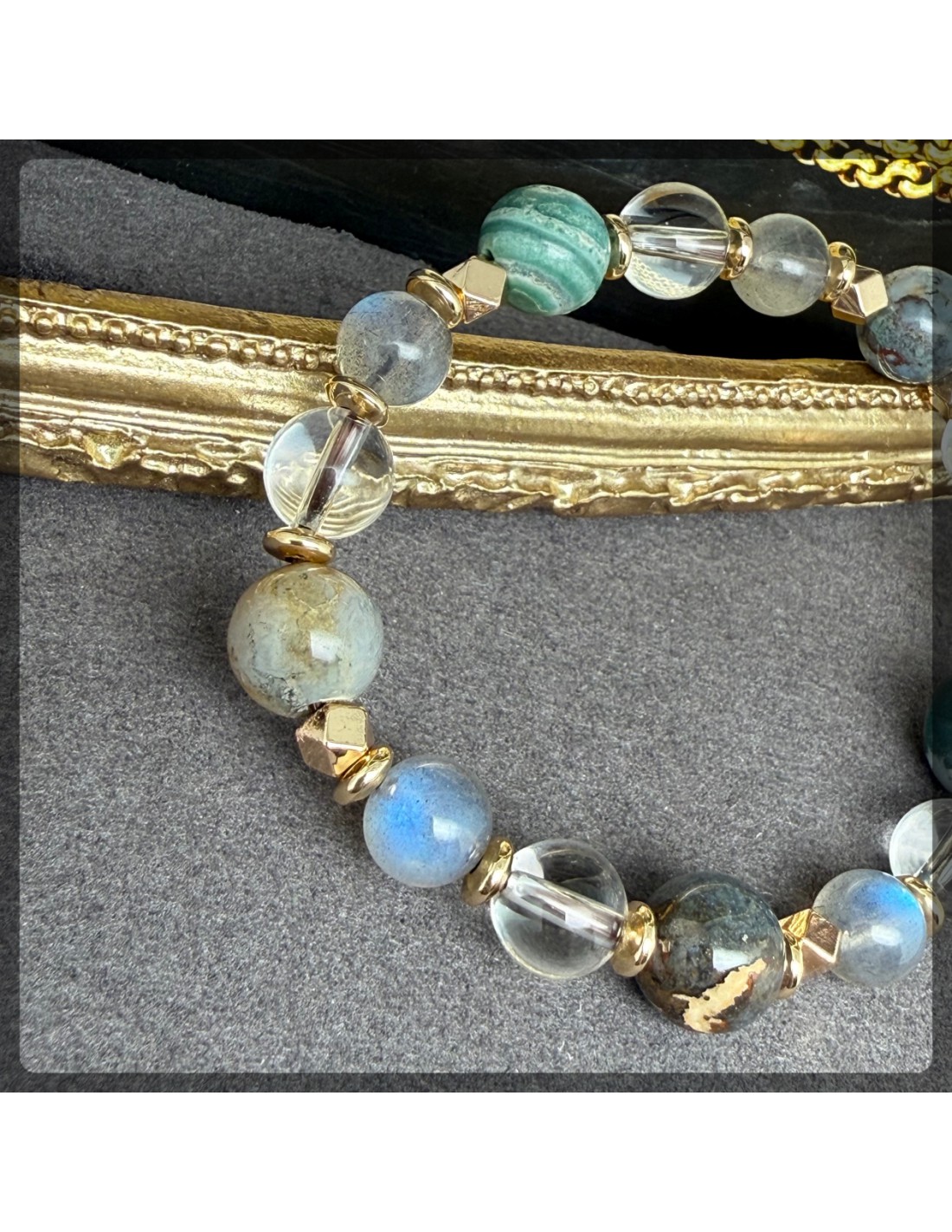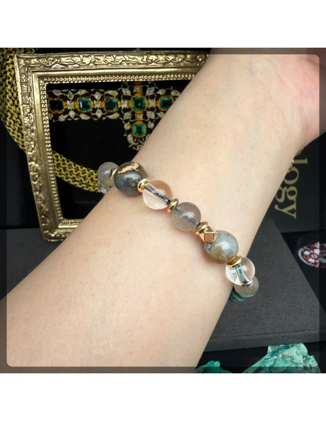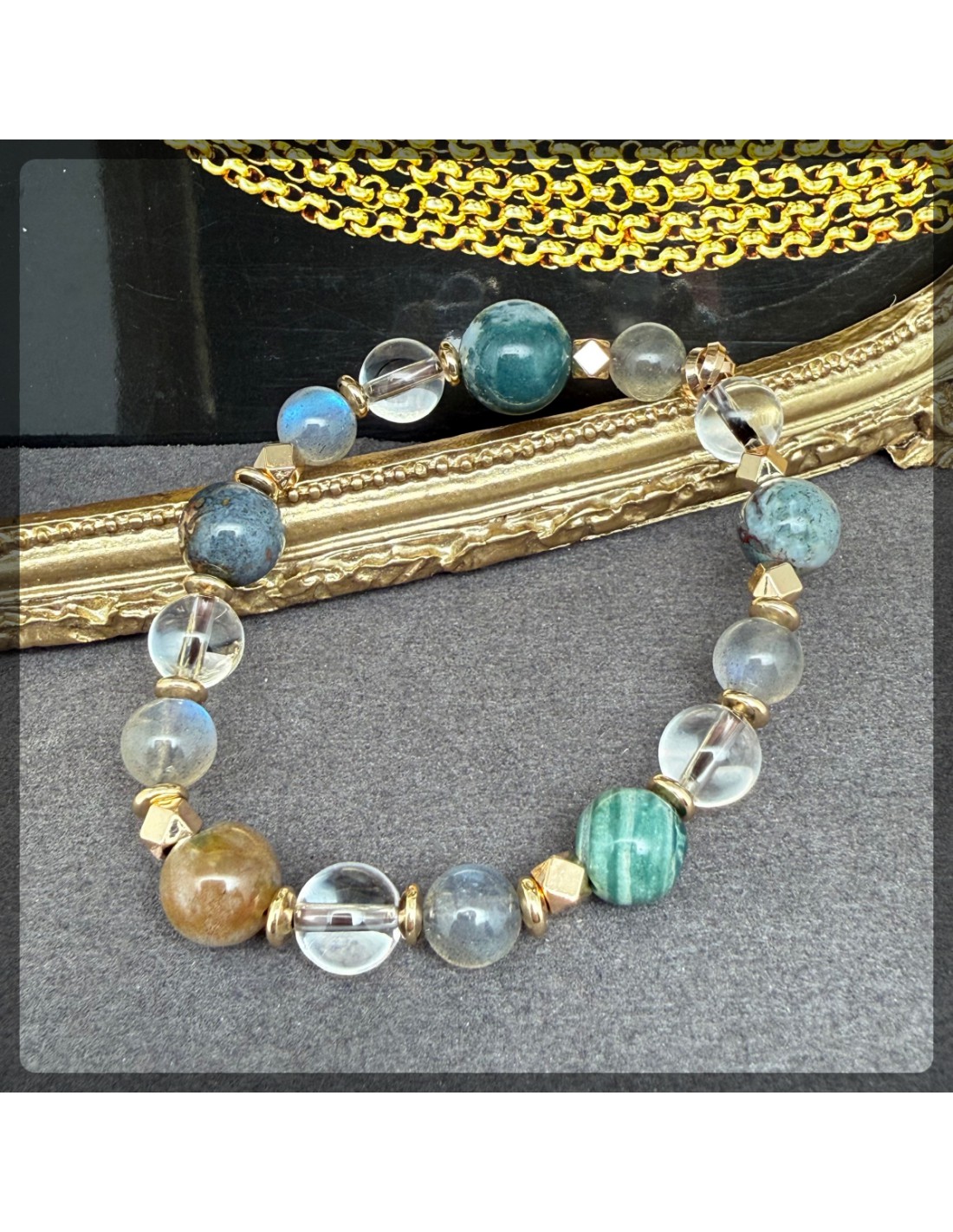 拉長石 白水晶 印度瑪瑙手鏈